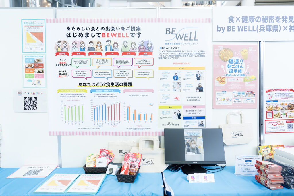 「BE WELL活動展示」コーナーが設けられ、プロジェクト企業の取り組みや神戸市民の食生活の課題などが紹介されていました。