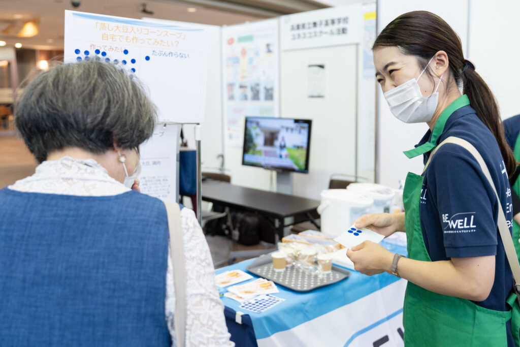 今回の試食メニューは、マルヤナギ小倉屋の「蒸し大豆」と味の素KKの「クノールⓇカップスープ コーンクリーム」を組み合わせた、お手軽、時短、なのにたんぱく質もとれる『蒸し大豆入りコーンスープ』。