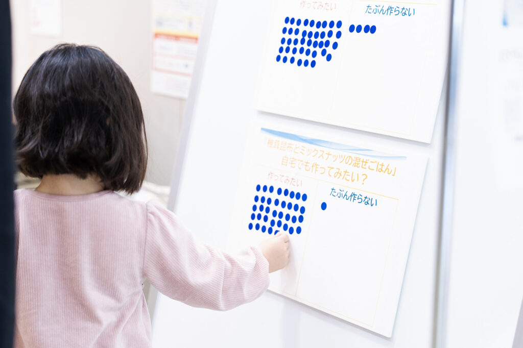 3:試食コーナーの「作ってみたいorたぶん作らない」のシールアンケートには子どもたちも答えてくれました