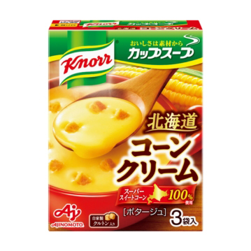 カップに「クノール®カップスープ」を入れ、分量の湯を注ぎ、すぐに15秒ほどかき混ぜ、「蒸し大豆」を加える。